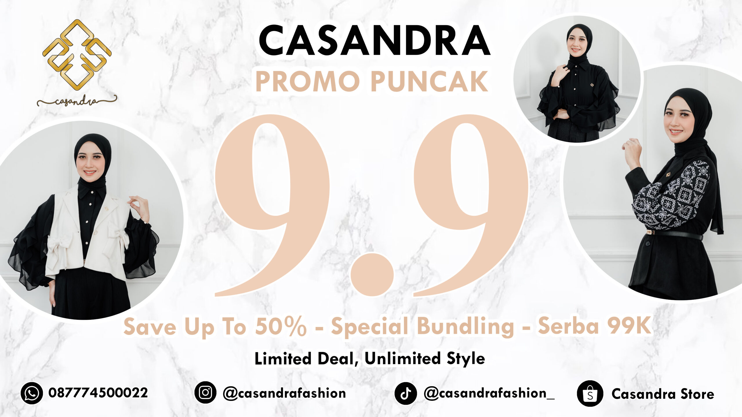 Casandra adalah Brand Fashion Indonesia yang menyediakan koleksi pakaian wanita muslim dengan desain modern dan kekinian yang selalu mengikuti perkembangan tren. Dengan mengutamakan kenyamanan dan kualitas, Casandra menawarkan berbagai pilihan produk seperti gamis, dress, hijab, dan setelan untuk berbagai acara. Menggunakan bahan premium yang lembut, produk Casandra sangat mengutamakan kenyamanan. Desain yang simpel namun tetap stylish membuat pemakainya terlihat lebih percaya diri. Casandra berkomitmen untuk selalu memberikan pilihan Fashion yang sesuai dengan gaya hidup wanita modern.
